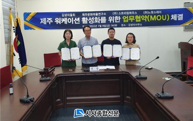 Á¦ÁÖ ±¸ÁÂÀ¾ÀÇ ±è³ç ¸¶À»È¸´Â Áö³ 7¿ù 8ÀÏ(±Ý) Á¦ÁÖ ±è³ç¸®ÀÇ »õ·Î¿î ¼ºÀå ¸ðµ¨ ±¸ÃàÀ» À§ÇØ Á¦ÁÖ¹®È¸¶À»¿¬±¸¼Ò, (ÁÖ)´À¶ù½ºÅ×ÀÌ, (ÁÖ) ½ºÆ®¸®¹ÖÇϿ콺¿Í ÇÔ²² ¿öÄÉÀÌ¼Ç È°¼ºÈ¸¦ À§ÇÑ ´ÙÀÚ°£ ¾÷¹« Çù¾àÀ» ü°áÇß´Ù°í ¹àÇû´Ù.