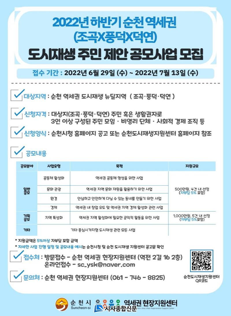 ±âŸ ÀÚ¼¼ÇÑ »çÇ×Àº ¼øÃµ½Ãû ȨÆäÀÌÁö ¶Ç´Â ¼øÃµ½Ã µµ½ÃÀç»ýÇöÀåÁö¿ø¼¾ÅÍ È¨ÆäÀÌÁö¡¤ºí·Î±×¿¡¼ È®ÀÎÇϰųª ¼øÃµ ¿ª¼¼±Ç ÇöÀåÁö¿ø¼¾ÅÍ(061-746-8825)·Î ¹®ÀÇÇÏ¸é ¾È³»¹ÞÀ» ¼ö ÀÖ´Ù.