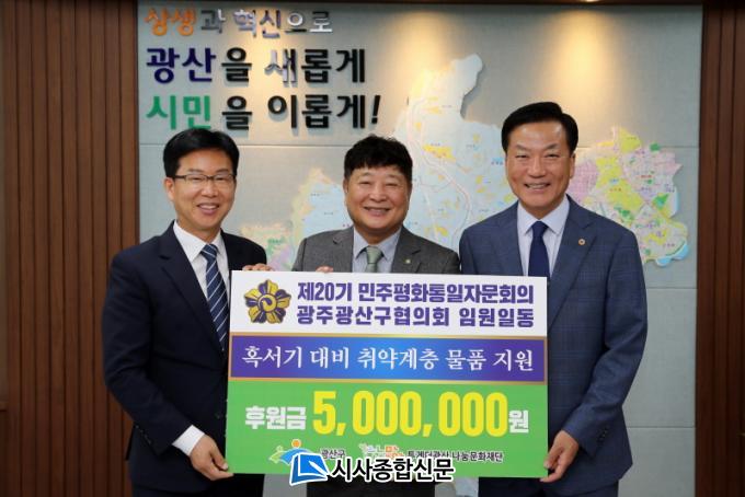 [½Ã»çÁ¾ÇսŹ® = ¿À½ÂÅà ±âÀÚ] ¹ÎÁÖÆòÈÅëÀÏÀÚ¹®È¸ÀÇ ±¤ÁÖ±¤»ê±¸ÇùÀÇȸ(ȸÀå ±è½Â¾ð)°¡ 12ÀÏ ¿ÀÀü ±¤»ê±¸Ã»¿¡¼ Àü´Þ½ÄÀ» °®°í, ±¤»ê±¸ °ü³» Ãë¾à°èÃþÀÇ °Ç°ÇÑ ¿©¸§³ª±â¸¦ Áö¿øÇϱâ À§ÇØ 500¸¸ ¿øÀ» Åõ°Ô´õ±¤»ê ³ª´®¹®ÈÀç´Ü¿¡ ±âŹÇß´Ù.