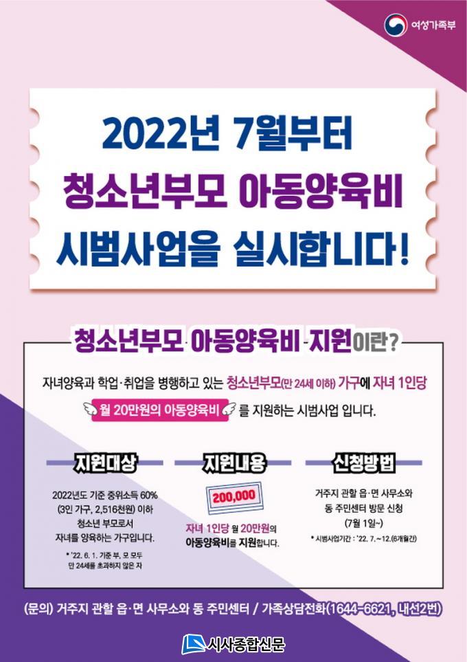 û¼Ò³â±â¿¡ ÀӽŰú Ãâ»ê, ¾çÀ°À» °ÞÀ¸¸ç »ýȰÀÌ ¾î·Á¿î û¼Ò³âºÎ¸ðÀÇ Çо÷, Ãë¾÷Áغñ, ¾çÀ°ºÎ´ãÀ» ´ú¾îÁÖ±â À§ÇÑ ¡®Ã»¼Ò³âºÎ¸ð ¾Æµ¿¾çÀ°ºñ Áö¿ø ½Ã¹ü»ç¾÷¡¯ÀÌ´Ù.¿Ã ¿¬¸»±îÁö 6°³¿ù°£ ½Ã¹ü ½ÃÇàÇÏ°Ô µÈ´Ù.
