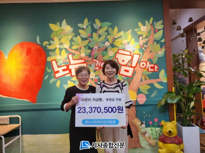 | ¿©¼ö½Ã¾î¸°ÀÌÁý¿¬ÇÕȸ, Àü³²µ¿ºÎ°¡Á¤À§Å¹Áö¿ø¼¾ÅÍ¿¡ ¡®ÈÄ¿ø±Ý¡¯ Àü´Þ ¡®»ç¶ûÀÇ Àú±ÝÅ롯 ÈÄ¿ø±Ý 23,370,500¿ø¡¦°ü³» 133°³ ¾î¸°ÀÌÁý¿¡¼ ½Ê½ÃÀÏ¹Ý ¸ð¾Æ |