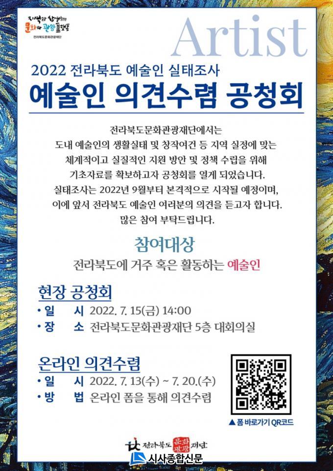 Àǰ߼ö·Å ´ë»óÀº Àü¶óºÏµµ¿¡ °ÅÁÖÇϰųª Ȱµ¿ÇÏ´Â ¿¹¼úÀÎÀ̸ç, À̹ø ÇöÀå°øÃ»È¸¿¡ Âü¿©ÇÏÁö ¸øÇÏ´Â ¿¹¼úÀεéÀº Àç´Ü ȨÆäÀÌÁö¿¡¼ ÁøÇàµÇ´Â ¿Â¶óÀÎ Àǰ߼ö·Å(2022.7.13.~7.20.)¿¡ Âü¿©ÇÒ ¼ö ÀÖ´Ù.