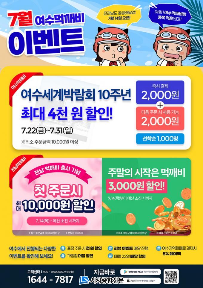 Àü¶ó³²µµ °ø°ø¹è´Þ¾ÛÀÎ ¡®Àü³²¸Ô±úºñ¡¯µµ ÀÌ´Þ 14ÀÏ Ãâ½ÃÇÑ´Ù.Ãâ½Ã ±â³äÀ¸·Î ù ÁÖ¹®ÀÚ¿¡°Ô 1¸¸¿ø(ÁÖ¹®Áï½Ã 5õ¿ø, ¿Ï·á½Ã 5õ¿ø ÇÒÀÎ ÄíÆù)À» ÇÒÀÎÇØÁÖ´Â À̺¥Æ®°¡ µµ¹Î 7,000¸íÀ» ´ë»óÀ¸·Î ¼±Âø¼ø ÁøÇàµÈ´Ù.