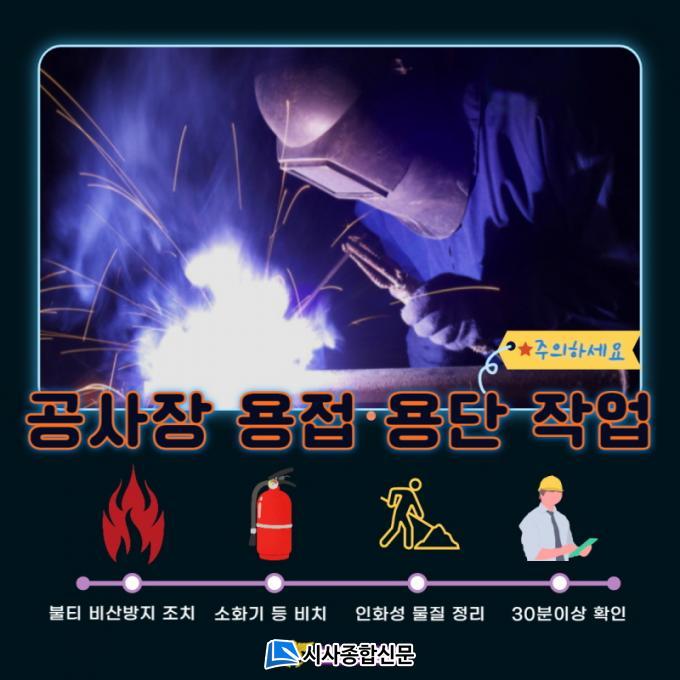 °´öÈÆ ¿¹¹æ¾ÈÀü°úÀåÀº "¿ëÁ¢¡¤¿ë´Ü ÀÛ¾÷ Áß ºÒƼ¿¡ ÀÇÇÑ ÈÀç´Â °ÇÃàÁÖ»Ó¸¸ ¾Æ´Ï¶ó ´Ù·®ÀÇ ¿¬±â°¡ ¹ß»ýµÇ¾î ½Ã¹Î ¾ÈÀü¿¡ À§ÇùÀÌ µÈ´Ù"¸é¼ ¡°ÀÛ¾÷ Àü ¾ÈÀü±³À°°ú ¾ÈÀü¼öÄ¢ Áؼö¸¦ ÅëÇØ ÈÀç ¹× ¾ÈÀü»ç°í°¡ ¹ß»ýÇÏÁö ¾Êµµ·Ï °¢º°È÷ ÁÖÀÇÇØ´Þ¶ó¡±°í ¸»Çß´Ù.