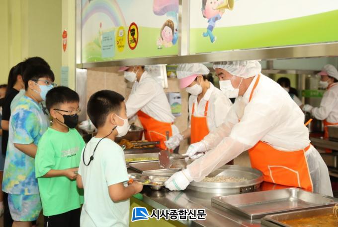 ½Ã±³À°Ã»Àº ÀÌ¿¡ µû¶ó Á¶¸®Á¾»ç¿øÀÌ ¹æÇÐÁß ±Ù·Î¿¡ µ¿ÀÇÇϰí, Á÷¿µ±Þ½ÄÀ» Èñ¸ÁÇÑ ÃʵîÇб³ ¹× À¯Ä¡¿ø 11°÷À» ´ë»óÀ¸·Î ±Þ½Ä½ÇÀ» ½Ã¹ü ¿î¿µÇÑ´Ù. À̸¦ ÅëÇØ Ãʵî 1,2Çг⠵¹º½Çлý°ú À¯Ä¡¿ø ¹æ°úÈÄ °úÁ¤ ¿ø»ý¿¡°Ô ¹«»óÀ¸·Î Á¡½É ½Ä»ç¸¦ Á¦°øÇÒ ¹æÄ§ÀÌ´Ù. ½Ã¹ü¿î¿µ ±â°£Àº 20¿© ÀÏÀÌ´Ù.