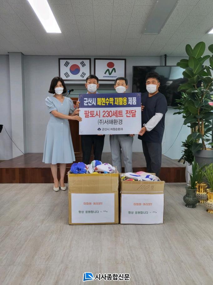 [½Ã»çÁ¾ÇսŹ® = ¿À½ÂÅà ±âÀÚ] ±º»ê½Ã´Â Áö³ 6.1ÀÏ Áö¹æ¼±°Å¿¡¼ ¹ß»ýÇÑ ÆóÇö¼ö¸·À» ÀçȰ¿ëÇØ ¸¸µç ÆÈÅä½Ã 400¿© ¼¼Æ®¸¦ ¢ß¼ÇØÈ¯°æ, ¢ß±ÝÈ£·ÎÁö½º, ±º»ê½Ã ¹ÌÈ¿ø¿¡°Ô ¹«»óÀ¸·Î Àü´ÞÇß´Ù.