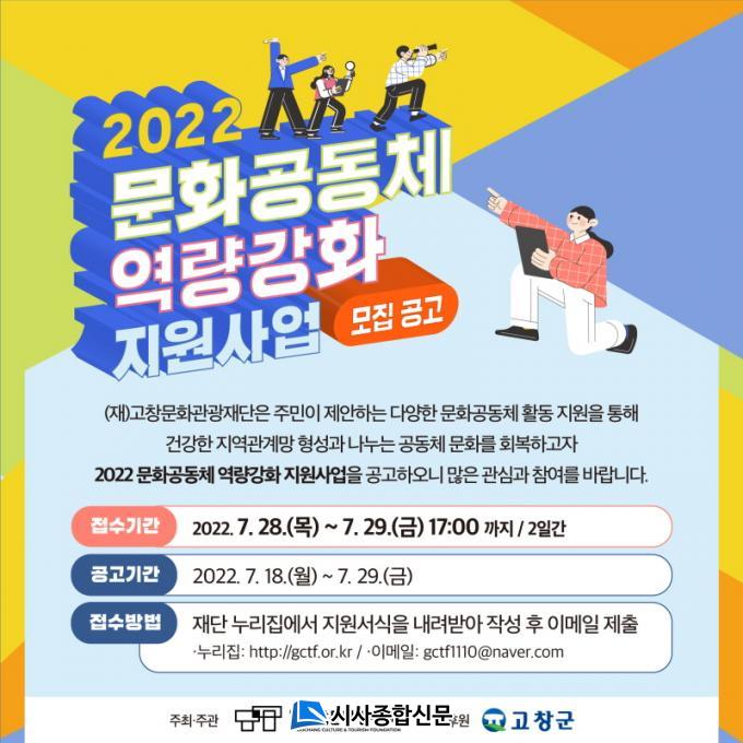 ¡®¹®È°øµ¿Ã¼ ¿ª·®°È Áö¿ø»ç¾÷¡¯Àº °íⱺ¿¡¼ Ȱµ¿ÇÏ´Â ¹®È°øµ¿Ã¼¸¦ ´ë»óÀ¸·Î Âü¿©ÀÚµéÀÌ ¿øÇÏ´Â ¹®ÈȰµ¿À» ÆîÄ¥ ¼ö ÀÖµµ·Ï Áö¿øÇÏ´Â »ç¾÷ÀÌ´Ù.