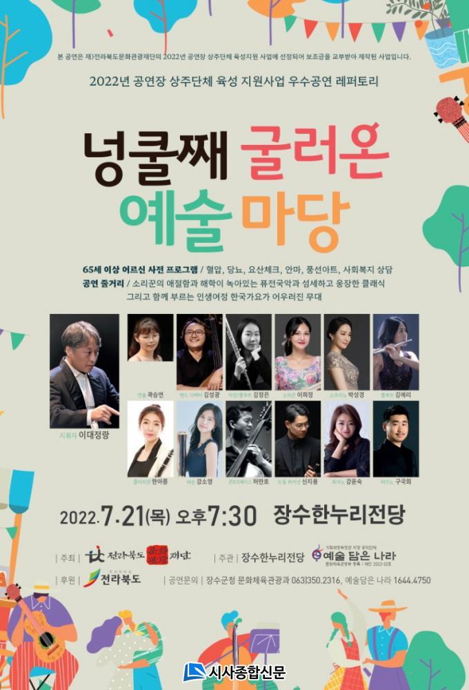 Àü¶óºÏµµ¹®È°ü±¤Àç´ÜÀÌ ÁÖÃÖÇϰí Àå¼öÇÑ´©¸®Àü´ç°ú »óÁÖ´Üü(¿¹¼ú´ãÀº³ª¶ó)°¡ ÁÖ°üÇÏ´Â À̹ø °ø¿¬Àº ¿À´Â 7¿ù 21ÀÏ ¸ñ¿äÀÏ ¿ÀÈÄ 7½Ã 30ºÐ¿¡ Àå¼öÇÑ´©¸®Àü´ç¿¡¼ ÆîÃÄÁø´Ù.