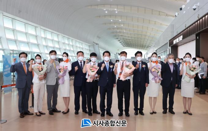 ±â³äÇà»ç¿¡´Â ±è¿µ·Ï µµÁö»ç¿Í ±è»ê ¹«¾È±º¼ö, ±è°æÇö ¹«¾È±ºÀÇȸ ÀÇÀå, ½Å¿ë±¸ Çѱ¹°øÇ×°ø»ç Ç×°ø»ç¾÷º»ºÎÀå, ±èÀ̹è Á¦ÁÖÇ×°ø ´ëÇ¥ÀÌ»ç, Àü³²µµ¿Í ¹«¾È±º °ü°èÀÚ µîÀÌ Âü¼®ÇßÀ¸¸ç, Çà»ç Âü¼®ÀÚµéÀº ±âÀå°ú ½Â¹«¿øµé¿¡°Ô ²É´Ù¹ßÀ» Àü´ÞÇÏ¸ç ±¹Á¦¼± ÀçÃëÇ×À» ÃàÇÏÇß´Ù.