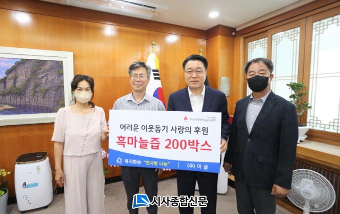| 20ÀÏ (ÁÖ)À̱ۿ¡¼ ¾î·Á¿î ÀÌ¿ôÀ» À§ÇØ Èæ¸¶´ÃÁø¾× 200¹Ú½º¸¦ ÈÄ¿øÇß´Ù. »çÁøÀº ±º¼ö½Ç¿¡¼ ¿¸° ±âŹ½Ä¿¡ Âü¼®ÇÑ ±¸º¹±Ô(¿À¸¥ÂÊ 2¹øÂ°) ȼø±º¼ö, ÀÌÁÖ»ó(¿À¸¥ÂÊ 3¹øÂ°) ¢ßÀÌ±Û ´ëÇ¥ÀÌ»ç ¹× °ü°èÀÚ°¡ ±â³äÃÔ¿µ ÇÏ´Â ¸ð½À