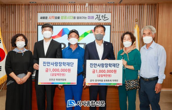 ±ÝÁö.¾çÁö¸¶À» À¯Ã¤ÃàÁ¦ ÀÛ¸ñ¹Ý°ú Áø¾È±º Çпø¿¬ÇÕȸ´Â 21ÀÎ Áø¾È»ç¶ûÀåÇÐÀç´ÜÀ» ã¾Æ °¢°¢ 100¸¸ ¿øÀÇ ÀåÇбÝÀ» ±âŹÇß´Ù. ±ÝÁö.¾çÁö¸¶À» À¯Ã¤ÃàÁ¦ÀÛ¸ñ¹ÝÀº Áö³ 4¿ù »óÀü ±ÝÁö.¾çÁö¸¶À»¿¡¼ °³ÃÖÇÑ À¯Ã¤²É ÃàÁ¦ÀÇ ¼öÀÍ±Ý ÀϺθ¦ ±âºÎÇßÀ¸¸ç, Áø¾ÈÁö¿ª Çпø 10°³¼Ò°¡ Âü¿©ÇÑ Áø¾È±ºÇпø¿¬ÇÕȸ´Â Áö¿ª ÇлýµéÀÇ Çз½ÅÀå°ú Àç´É°³¹ßÀ» À§ÇØ Áø¾È»ç¶ûÀåÇÐÀç´Ü¿¡ ²ÙÁØÈ÷ ±âºÎ¸¦ À̾î¿À°í ÀÖ´Ù.