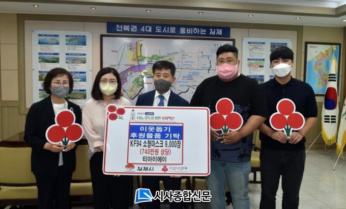 [½Ã»çÁ¾ÇսŹ® = ¿À½ÂÅà ±âÀÚ] Ƽ¾ÆÀÌ¿¡ÀÌ(´ëÇ¥ ±èâ¼ö)¿¡¼ °ü³» Àú¼Òµæ °¡Á¤ ¹× »çȸº¹Áö½Ã¼³¿¡ Áö¿øÇϱâ À§ÇØ KF94 ¼ÒÇü¸¶½ºÅ© 9,000ÀåÀ» ±âºÎÇÏ¿´´Ù.