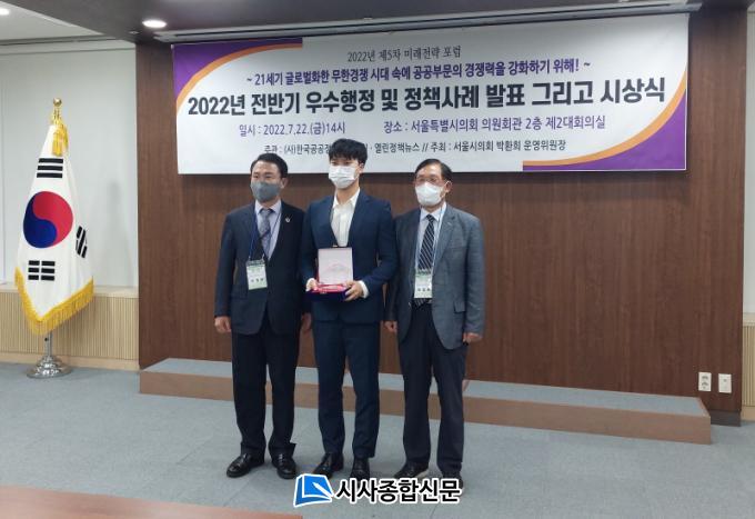 | 22ÀÏ ¼¿ïƯº°½ÃÀÇȸ ÀÇ¿øÈ¸°ü 2Ãþ¿¡¼ ¿¸° ¡®2022³â Àü¹Ý±â ¿ì¼öÇàÁ¤ ¹× Á¤Ã¥»ç·Ê ½Ã»ó½Ä¡¯¿¡¼ ¿ì¼ö»óÀ» ¼ö»óÇÑ ¿©¼ö±¤¾çÇ׸¸°ø»ç ±èÇÑ»ù ÁÖÀÓ(»çÁø °¡¿îµ¥)ÀÌ ±â³äÃÔ¿µÀ» Çϰí ÀÖ´Ù.
