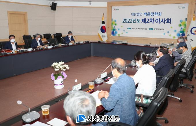 À̹ø ÀÌ»çȸ´Â Á¤ÀÎÈ ±¤¾ç½ÃÀå µî 12¸íÀÇ ÀÌ»ç¿Í 2¸íÀÇ °¨»ç°¡ Âü¼®ÇÑ °¡¿îµ¥ 2022³â ¹é¿îÀåÇÐȸ ÀÌ»çÀå°ú ÀÌ»ç ¼±ÀÓ¾È, 2022³â ¹é¿îÀåÇлý ¼±¹ß °èȹ ½ÂÀÎ¾È µî 4°ÇÀÇ ¾È°ÇÀ» ½ÉÀÇ ÀǰáÇß´Ù.