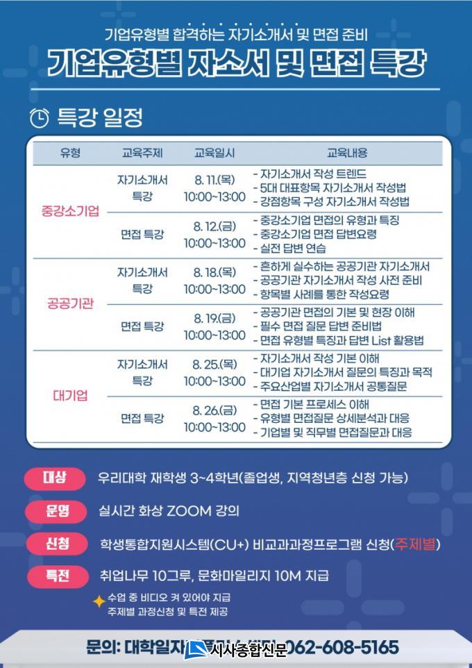 [½Ã»çÁ¾ÇսŹ® = ¿À½ÂÅà ±âÀÚ] Á¶¼±´ëÇб³ ´ëÇÐÀÏÀÚ¸®Ç÷¯½º¼¾ÅÍ(¼¾ÅÍÀå À±¿À³²)°¡ ÇϹݱâ ä¿ëÀ» ´ëºñÇÑ ÀÚ±â¼Ò°³¼ ÀÛ¼º¹ý ¹× ¸éÁ¢Æ¯°À» 8¿ù 11ÀϺÎÅÍ 26ÀϱîÁö 3ÁÖ°£ ¿î¿µÇÑ´Ù.