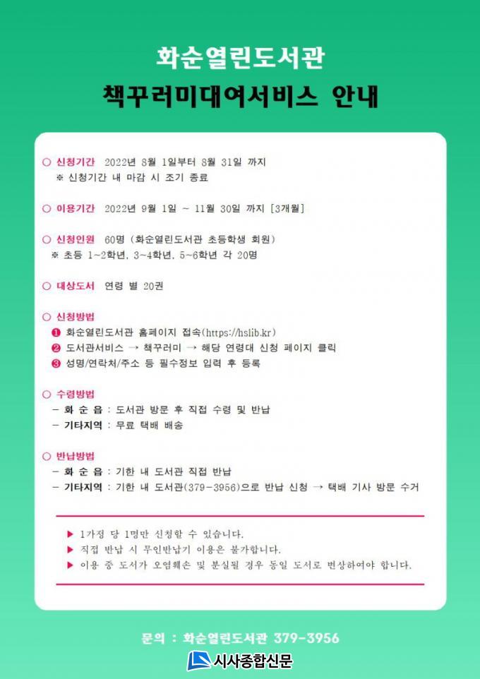 Ã¥ ²Ù·¯¹Ì ¼ºñ½º´Â 8¿ù 1ÀϺÎÅÍ 8¿ù 31ÀϱîÁö ȼø¿¸°µµ¼°ü ´©¸®Áý¿¡¼ ½ÅûÇÒ ¼ö ÀÖ°í, 11¿ù 30ÀϱîÁö ÀÌ¿ëÇÒ ¼ö ÀÖ´Ù.½ÅûÇÑ µµ¼´Â ȼøÀ¾ °ÅÁÖÀÚ´Â µµ¼°ü¿¡ Á÷Á¢ ¹æ¹®Çؼ ¹Þ¾Æ¾ß Çϰí, µµ¼°ü¿¡ Á÷Á¢ ¹æ¹®Çϱ⠾î·Á¿î ¸é Áö¿ª ÀÌ¿ëÀÚ´Â Áý±îÁö ¹è¼ÛÇØÁÖ´Â ¹«·á ÅÃ¹è ¼ºñ½º¸¦ ¿î¿µÇÑ´Ù.