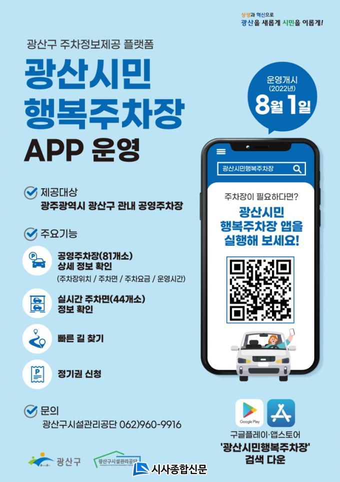 ±¤»ê±¸´Â 2020³â ±¤»ê±¸ ½º¸¶Æ®¼Ö·ç¼Ç縰Áö»ç¾÷À» ÅëÇØ ÈÞ´ëÆù ±â¹Ý ½º¸¶Æ®ÁÖÂ÷Ç÷§ÆûÀ» ±¸Ãà, Áö³ 1³â6°³¿ù°£ ¼ºñ½º °³¼±À» ÁøÇàÇß´Ù. À̸¦ ÅëÇØ ¼±º¸ÀÌ´Â ¡®±¤»ê½Ã¹ÎÇູÁÖÂ÷À塯Àº ±¤»ê±¸ °ü³» ÃÑ 81°³¼Ò °ø¿µ ¹× °øÀ¯ÁÖÂ÷Àå Á¤º¸¸¦ ´ã°í ÀÖ´Ù. ÁÖÂ÷Àå À§Ä¡ºÎÅÍ ÁÖÂ÷¸é, ÁÖÂ÷¿ä±Ý, ¿î¿µ½Ã°£ µî »ó¼¼ Á¤º¸¸¦ È®ÀÎÇÒ ¼ö ÀÖ´Ù.