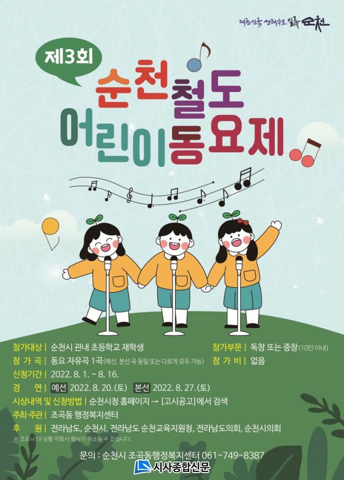 2018³â ù °³ÃÖ ÀÌÈÄ 3³â°¸¦ ¸ÂÀÌÇÑ ¼øÃµÃ¶µµ¾î¸°À̵¿¿äÁ¦´Â Á¶°îµ¿ Æ¯È ÃàÁ¦ÀÎ Á¦5ȸ ¼øÃµÃ¶µµ¸¶À»ÃàÁ¦¿Í ¿¬°èÇÏ¿© ¾î¸°À̵éÀÇ Àç´ÉÀ» ¹ß±¼ÇÏ°í ¸¹Àº °üÁß ¾Õ¿¡¼ ¼Ø¾¾¸¦ »Ë³¾ ¼ö ÀÖ´Â ±âȸ¸¦ Á¦°øÇϰíÀÚ ¸¶·ÃµÇ¾ú´Ù.