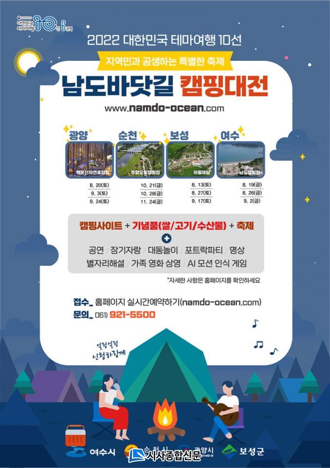 ´ëÇѹα¹ Å׸¶¿©Çà 10¼± Áß 6±Ç¿ª ÇÁ·Î±×·¥À¸·Î ³²µµÀÇ ¾Æ¸§´Ù¿î °ü±¤ÀÚ¿øÀ» È«º¸Çϰí Ä·Çι®È¸¦ °³¼±Çϱâ À§ÇØ ±âȹµÆ´Ù. 8¿ùºÎÅÍ 11¿ù±îÁö ¿©¼ö¿Í ¼øÃµ, ±¤¾ç, º¸¼º¿¡¼ °¢°¢ 3Â÷·Ê¾¿ ÃÑ 12ȸ °³ÃֵȴÙ.