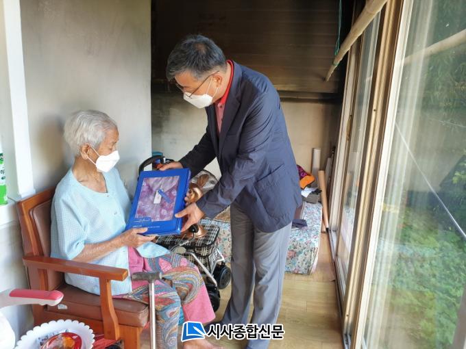 ÀÌ»ï½Ä ¿Á·æ¸éÀåÀº µ¿µ¿¸¶À» °ÅÁÖ 100¼¼ ÇҸӴϸ¦ Á÷Á¢ ã¾ÆºË°í ½Ä»ç¿Í °Ç° µî ¾ÈºÎ¸¦ »ìÇÇ°í ¸ð½Ã ³»ÀǸ¦ Àü´ÞÇßÀ¸¸ç, ¾î¸£½ÅÀº ¡°¹«´õÀ§¿¡ ¶æ¹ÛÀÇ ¼±¹°À» ¹Þ¾Æ °¨»çÇÏ´Ù¡±°í ±â»µÇß´Ù.