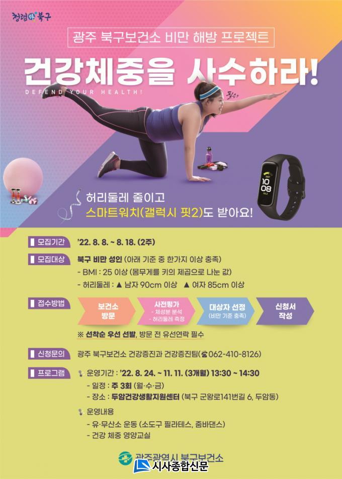 À̹ø ÇÁ·Î±×·¥Àº Äڷγª 19·Î ÀÎÇÑ ½Ä½À°ü º¯È ¹× ½ÅüȰµ¿ °¨¼Ò¿¡ µû¸¥ üÁßÁõ°¡ ¼ºÀεéÀÇ °Ç°¹®È È®»êÀ» À§ÇØ ¸¶·ÃÇß´Ù. ½ÅûÀÚ Áß Ã¼Áß°ü¸®°¡ ÇÊ¿äÇÑ ºñ¸¸¼ºÀÎ 20¸íÀ» ¼±Á¤ÇØ, ÀÌ´Þ 22ÀϺÎÅÍ 11¿ù 11ÀϱîÁö ½ÅüȰµ¿ ¹× ¿µ¾ç±³½Ç µîÀ» ³»¿ëÀ¸·Î ÁÖ 3ȸ ¿î¿µÇÑ´Ù.