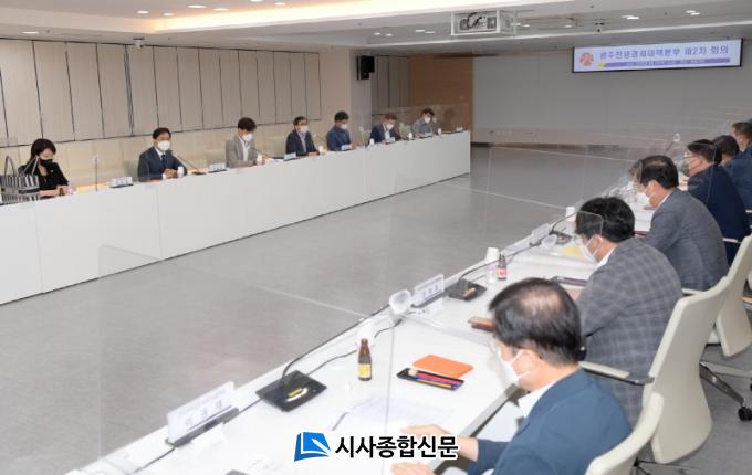 ½Ã´Â 4ÀÏ ±è±¤Áø ¹®È°æÁ¦ºÎ½ÃÀå ÁÖÀç·Î ±¤Áֹλý°æÁ¦´ëÃ¥º»ºÎ Á¦2Â÷ ȸÀǸ¦ ¿°í ±¤ÁÖ»ó°øÈ¸ÀǼÒ, ±¤Áְ濵ÀÚÃÑÇùȸ, ±¤ÁÖ¡¤Àü³²Áö¹æÁß¼Òº¥Ã³±â¾÷û, ±¤ÁÖÁö¹æ°í¿ë³ëµ¿Ã», Çѱ¹ÀºÇà ±¤ÁÖ¡¤Àü³²º»ºÎ, ±ÝÀ¶°¨µ¶¿ø ±¤ÁÖ¡¤Àü³²Áö¿ø µî 17°³ °æÁ¦´Üü, À¯°ü±â°ü µîÀÌ Âü¼®ÇÑ °¡¿îµ¥ »ç¾÷°èȹÀ» ³íÀÇÇß´Ù.
