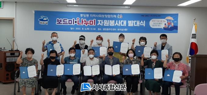 | ¿©¼ö½Ã Áß¾Óµ¿ Áö¿ª»çȸº¸ÀåÇùÀÇü, ¡®ÀÚ¿øºÀ»çÀÚ ¹ß´ë½Ä¡¯ °³ÃÖ ¡®º¸µå¹Ì‧³ª´©¹Ì ÀÚ¿øºÀ»ç´ë¡¯ 22¸í Âü¿©¡¦ÇùÀÇü ƯȻç¾÷¿¡ Àû±Ø ºÀ»ç |