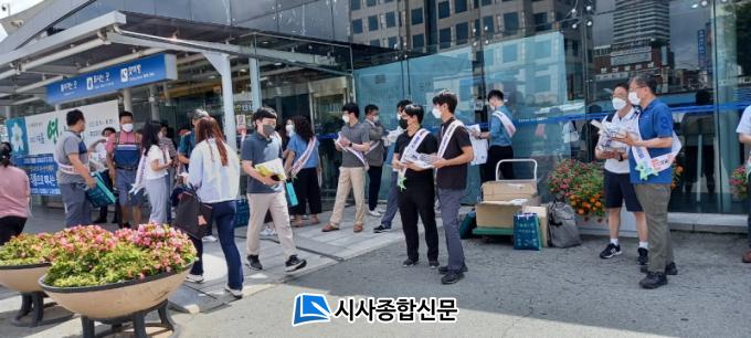 Àü³²µµ´Â Àü¶ó³²µµÃ»·Å»çȸ¹Î°üÇùÀÇȸ¿Í ÇÔ²² °øÁ÷ÀÚÀÇ ¹ÝºÎÆÐ ÀÇÁö¸¦ Áö¿ª»çȸ¿¡ ÀüÆÄÇϰí û·Å¹®È¸¦ È®»êÇϱâ À§ÇØ 5ÀÏ ¸ñÆ÷¿ª¿¡¼ ºÎÆÐ°øÀͽŰí Á¦µµ È«º¸ û·ÅÄ·ÆäÀÎÀ» Àü°³Çß´Ù.
