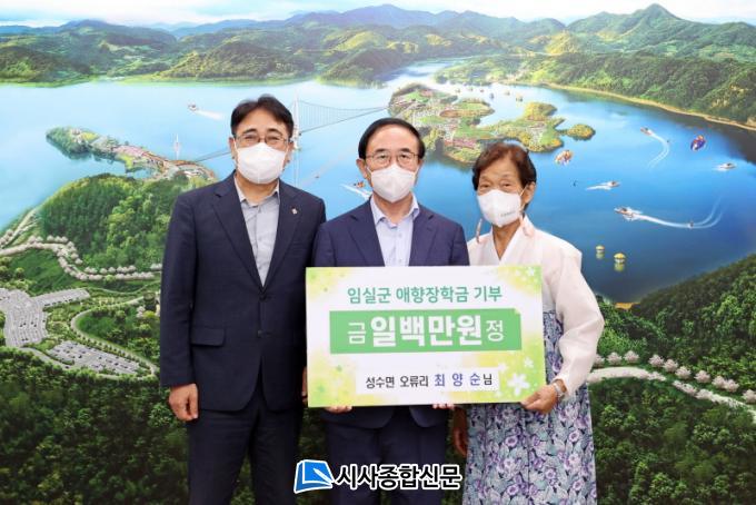 [½Ã»çÁ¾ÇսŹ® = ¿À½ÂÅà ±âÀÚ] ÀӽDZº ¼º¼ö¸é¿¡ °ÅÁÖÇÏ´Â ÃÖ¾ç¼ø ¾¾°¡ 8ÀÏ ÀӽDZºÃ»À» ¹æ¹®ÇØ Áö¿ª ÇлýµéÀ» À§ÇÑ ÀåÇÐ±Ý 100¸¸¿øÀ» (Àç)ÀӽDZº ¾ÖÇâÀåÇÐȸ ÀÌ»çÀåÀÎ ½É ¹Î ±º¼ö¿¡°Ô Àü´ÞÇß´Ù.
