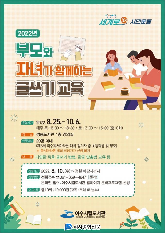 [½Ã»çÁ¾ÇսŹ® = ¿À½ÂÅà ±âÀÚ] ¿©¼ö½Ã¸³µµ¼°üÀÌ ¡®ºÎ¸ð¿Í Àڳడ ÇÔ²²ÇÏ´Â ±Û¾²±â ±³À°¡¯À» ¿î¿µÇÑ´Ù.