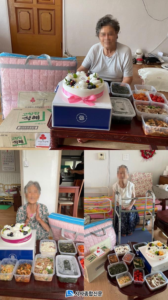 »ý½Å ì°Üµå¸®±â »ç¾÷Àº »ýÀÏÀ» ¸ÂÀº ¸¸ 85¼¼ ÀÌ»óÀÇ Àú¼Òµæ µ¶°Å³ëÀÎÀ» ´ë»óÀ¸·Î ÇÑ´Ù. ÀåÈïÀ¾ »õ¸¶À»ºÎ³àȸ(ȸÀå ¼Û¾ÖÀÚ), ÆÄ¸®¹Ù°Ô¶ß(´ëÇ¥ ±è¼±¿ì)¿Í ´ÔÇÁ¸¸À̺ҡ¤Ä¿ÅÙ(´ëÇ¥ ±èÁ¾±Ù), ·Ôµ¥Ä¥¼ºÀåÈï´ë¸®Á¡(´ëÇ¥ ±èÀçÁø)¿¡¼ °¢°¢ »ý½ÅÀ½½Ä, ÄÉÀÌÅ©, À̺Ò, À½·á, ±âŸ ¹°Ç°À» ÈÄ¿øÇß´Ù.