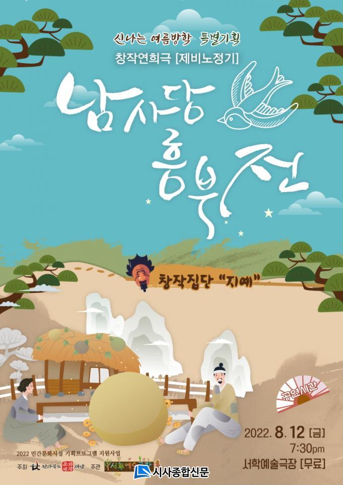 ¼Çп¹¼ú±ØÀåÀÌ ¹Î°£¹®È½Ã¼³ ±âȹÇÁ·Î±×·¥ Áö¿ø»ç¾÷À» ÅëÇØ ã¾Æ°¡´Â ù ¹øÂ° ÇÁ·Î±×·¥Àº ¿©¸§¹æÇРƯº°±âȹÀ¸·Î ÁغñµÈ <³²»ç´ç ÈïºÎÀü>ÀÌ´Ù. Àü·¡µ¿È ¡®ÈïºÎ¿Í ³îºÎ¡¯ À̾߱⸦ ¹ÙÅÁÀ¸·Î ÇÑ <³²»ç´ç ÈïºÎÀü>Àº ³²»ç´ç³îÀÌ¿Í ÆÇ¼Ò¸® Çù¾÷À¸·Î Á¦ÀÛµÈ Ã¢ÀÛ¿¬Èñ±ØÀ¸·Î, ±Ç¼±Â¡¾ÇÀÇ ±³ÈÆÀ» ´ã°í ÀÖ´Ù. ÀþÀº ÀüÅ뿹¼úÀÎÀ» Áß½ÉÀ¸·Î â´ÜµÈ âÀÛÁý´Ü <Áö¿¹>ÀÇ Ã¢ÀÛ¿¬Èñ±Ø <³²»ç´ç ÈïºÎÀü>Àº 8¿ù 12ÀÏ(±Ý) ¿ÀÈÄ 7½Ã 30ºÐ¿¡ ¿Â °¡Á·ÀÌ ÇÔ²² Áñ±æ ¼ö ÀÖ´Ù.