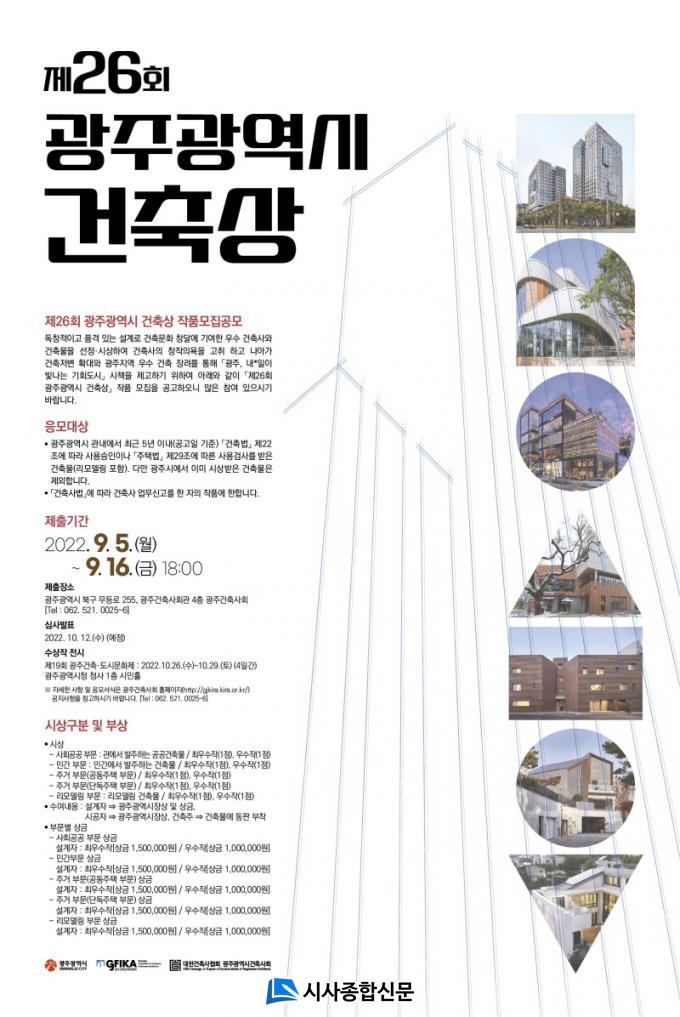 ±¤Áֽà °ÇÃà»ó ¿î¿µ¡¤½É»çÀ§¿øÀåÀÎ ¾È±æÀü °ÇÃà»ç(¢ßÀϿ쿣Áö´Ï¾î¸µ °ÇÃà»ç»ç¹«¼Ò ´ëÇ¥)´Â ¡°±¤Áֽà °ÇÃà»óÀº µ¶Ã¢ÀûÀ̰í ǰ°Ý ÀÖ´Â ¼³°è·Î ±¤ÁÖÁö¿ª °ÇÃà¹®È Ã¢´Þ¿¡ ±â¿©ÇÑ ¿ì¼ö °ÇÃà»ç¿Í °ÇÃ๰À» ¼±Á¤¡¤½Ã»óÇÏ´Â ±ÇÀ§ ÀÖ´Â °ÇÃà»óÀÌ´Ù¡±¸ç ¡°Çѱ¹°ÇÃ๮ȴë»ó°ú °ßÁÙ¸¸ÇÑ ¼¼ºÐÈµÈ ºÎ¹®À¸·Î ¹ßÀüÇÑ ¸¸Å ¿ÃÇØµµ ¿ì¼öÇÑ °ÇÃàÀÛǰµéÀÌ ´ë°Å ¹ß±¼µÉ °ÍÀ¸·Î ±â´ëÇÑ´Ù¡±°í ¸»Çß´Ù.