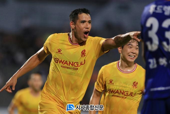 ±¤ÁÖÀÇ Çຸ°¡ °Åħ¾ø´Ù. Áö³ ¶ó¿îµå Ãæ³²¾Æ»êFC ¿øÁ¤À» ¶°³ ±¤ÁÖ´Â »êµå·Î¿Í ¸¶ÀÌŰÀÇ µæÁ¡¿¡ ÈûÀÔ¾î 2-0 ½Â¸®¸¦ °Åµ×´Ù. ÀÌ ³¯ ½Â¸®·Î ½ÂÁ¡ 61Á¡À» ±â·Ï, Ãß°ÝÀÚ 2À§ ºÎõ, 3À§ ¾È¾ç, 4À§ ´ëÀü°úÀÇ ½ÂÁ¡À» ¹ú¸®¸ç ½Â°Ý¿¡ À¯¸®ÇÑ °íÁö¸¦ ¼±Á¡Çß´Ù.