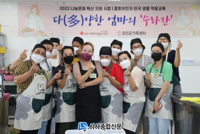 ¡¸´Ù¾çÇÑ ¾ö¸¶ÀÇ ¡®¼ö¶ó°£¡¯¡¹À̶ó´Â À̸§Ã³·³ º£Æ®³², įº¸µð¾Æ, ÀϺ», ű¹ Ãâ½Å °áÈ¥À̹ο©¼ºÀÌ Âü°¡ÇÑ À̹ø ÇÑ½Ä ¿ä¸®±³½ÇÀº ÃÑ 9ȸ±â·Î 8¿ù 9ÀϺÎÅÍ 10¿ù±îÁö ¸ÅÁÖ È¿äÀÏ ¿ÀÈÄ 2½Ã¿¡ °Áø±º¿©¼ºÈ¸°ü Á¶¸®½Ç¿¡¼ ÁøÇàÇÑ´Ù.