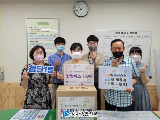 [½Ã»çÁ¾ÇսŹ® = ¿À½ÂÅà ±âÀÚ] ±¤Áֽà ±¤»ê±¸ ÷´ÜÀ¯ÁøÇѹ溴¿ø(´ëÇ¥¿øÀå °À¯Áø)ÀÌ Ãë¾à°èÃþÀ» À§ÇØ ÇѹæÆÄ½º 100ÆÑÀ» ÷´Ü1µ¿(µ¿Àå ³ª¼º¼÷)¿¡ Àü´ÞÇß´Ù. ÇѹæÆÄ½º´Â °üÀýÁúȯ µîÀ¸·Î °í»ýÇϰí ÀÖ´Â °ü³» Ãë¾à°èÃþ Áö¿ø¿¡ Ȱ¿ëµÉ ¿¹Á¤ÀÌ´Ù.