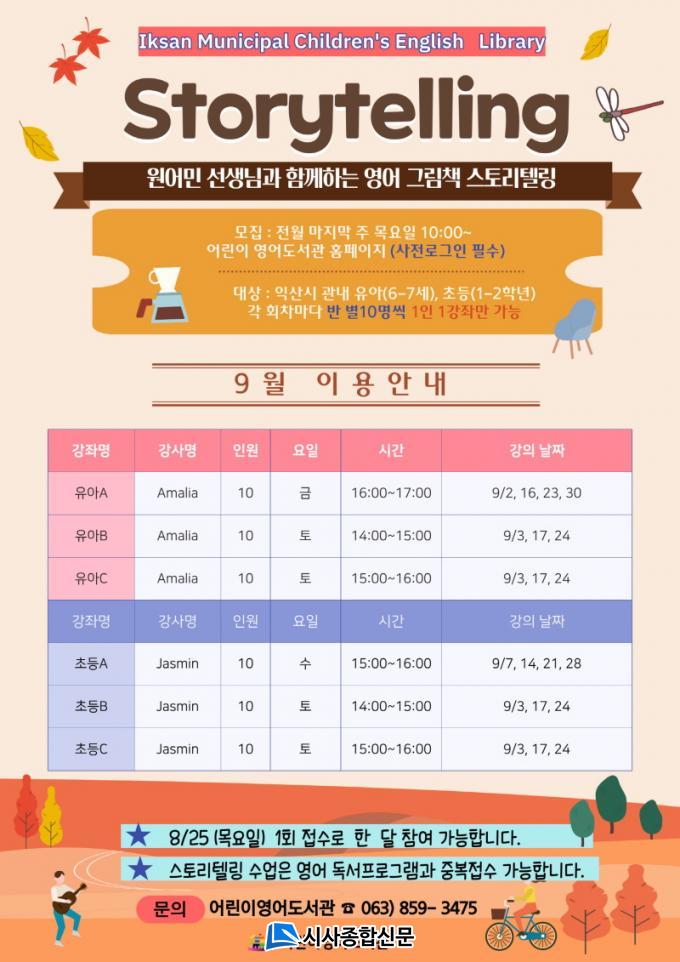 ¡®¿ø¾î¹Î°ú ÇÔ²²ÇÏ´Â ½ºÅ丮ÅÚ¸µ¡¯ÇÁ·Î±×·¥¿¡ °ü·ÃÇÑ ÀÚ¼¼ÇÑ »çÇ×Àº ¾î¸°ÀÌ¿µ¾îµµ¼°ü (¢Ï859-3475)À¸·Î ¹®ÀÇÇϰųª ȨÆäÀÌÁö(http://lib.iksan.go.kr.eng_lib)¸¦ Âü°íÇÏ¸é µÈ´Ù.