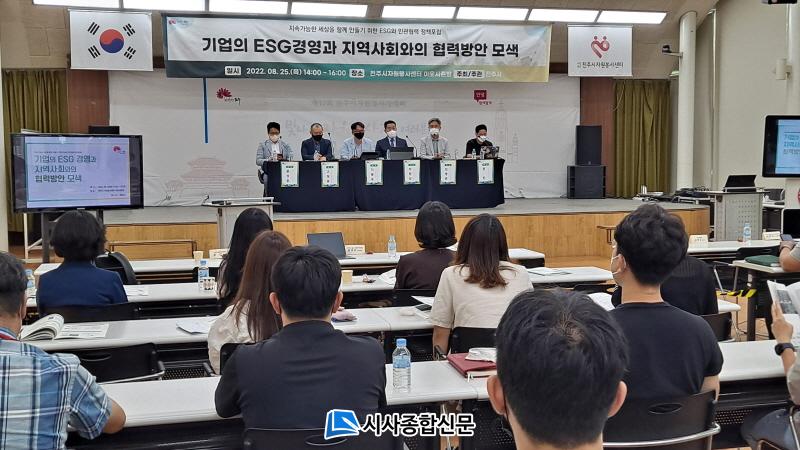 ½Ã´Â 25ÀÏ ÀüÁÖ½ÃÀÚ¿øºÀ»ç¼¾ÅÍ¿¡¼ ÀüÁÖ½ÃÁß¼Ò±â¾÷Àο±ÇÕȸ ¼Ò¼Ó ±â¾÷Àΰú ÀϹݽùÎ, °ø°ø±â°ü °ü°èÀÚ µî 100¿© ¸íÀÌ Âü¼®ÇÑ °¡¿îµ¥ ±â¾÷ÀÇ ESG °æ¿µ°ú »çȸ°øÇå¿¡ ´ëÇÑ ÀÌÇØ¸¦ µ½±â À§ÇÑ ¡®ESG¿Í ¹Î°üÇù·Â Á¤Ã¥Æ÷·³¡¯À» °³ÃÖÇß´Ù.