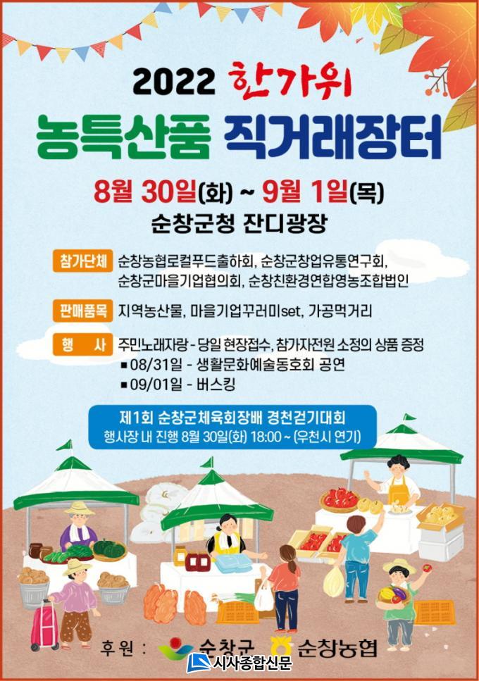 [½Ã»çÁ¾ÇսŹ® = ¿À½ÂÅà ±âÀÚ] ¼øÃ¢±ºÀÌ ¿ì¸®Áö¿ª ¿ì¼ö ³óƯ»êǰÀÇ È«º¸ ¹× ÆÇ¸Å ÁõÁøÀ» À§ÇÏ¿© ¼øÃ¢³óÇù, ·ÎÄÃǪµå ÃâÇÏ³ó°¡ ¹× Áö¿ª³ó»êǰ °¡°ø¾÷ü¿Í Çù·ÂÇÏ¿© ¡®2022³â ÇѰ¡À§ ³óƯ»êǰ Á÷°Å·¡ÀåÅÍ¡¯¸¦ °³ÃÖÇÑ´Ù°í ¹àÇû´Ù.