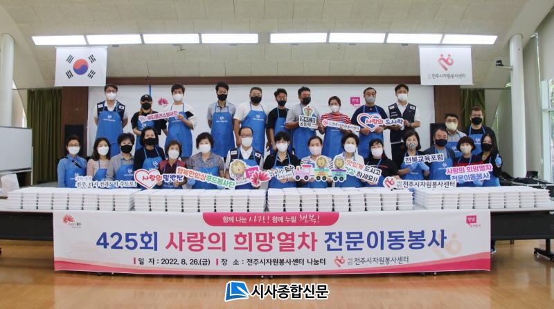 ÀüÁÖ½ÃÀÚ¿øºÀ»ç¼¾ÅÍ(ÀÌ»çÀå ȲÀÇ¿Á)´Â 26ÀÏ ¼¾ÅÍ ÀÌ¿ô»çÃ̹濡¼ ÇູÇѹä»ó ǪµåºÀ»ç´Ü(ȸÀå ¾È¿µ¼ø), ÀüºÏ±³À°Æ÷·³(ȸÀå ¹ÚÁ¤±Í), ºäƼÇ÷¯½ººÀ»ç´Ü(ȸÀå Áø¹Ì¿µ), Çູµå¸²ºÀ»ç´Ü(ȸÀå ¹®¼ºÇö) ¼Ò¼Ó ºÀ»çÀÚ 30¿© ¸íÀÌ Âü¼®ÇÑ °¡¿îµ¥ Áö¿ª ³ó»ê¹°·Î ¸¸µç °èÀý ±èÄ¡ µî 4°¡Áö ¹Ø¹ÝÂùÀ» ¸¸µé¾î ³ëÀκ¹Áö°ü µî¿¡ Àü´ÞÇÏ´Â ¡®425ȸÂ÷ »ç¶ûÀÇ Èñ¸Á¿Â÷ ºÀ»çȰµ¿¡¯À» Çß´Ù.