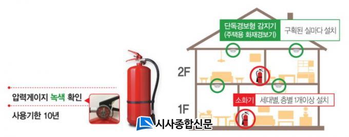 ÁÖÅÃ¿ë ¼Ò¹æ½Ã¼³À̶õ ¿¬±â·Î ÈÀ縦 °¨ÁöÇÏ¿© °æº¸À½À» ¿ï¸®´Â¡®´Üµ¶°æº¸Çü°¨Áö±â¡¯¿Í ÈÀ縦 Áø¾ÐÇÒ ¼ö Àִ¡®¼Òȱ⡯µÎ °¡Áö¸¦ ÀÏÄ´ ¸»·Î ´Üµ¶°æº¸Çü°¨Áö±â´Â ±¸È¹µÈ ½Ç¸¶´Ù ¼³Ä¡ÇØ¾ß Çϸç, ¼Òȱâ´Â ¼¼´ëº°, Ãþº°·Î 1°³ ÀÌ»ó ¼³Ä¡ÇØ¾ß ÇÑ´Ù.