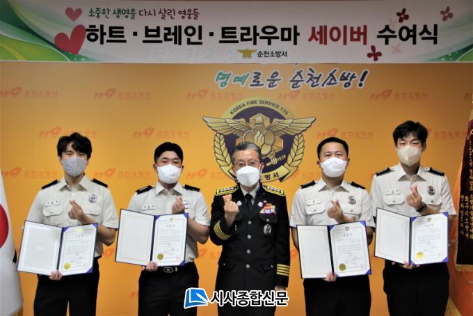 ƯÈ÷ ¼øÃµ¼Ò¹æ¼´Â Àü³²¿¡¼ °¡Àå ¸¹Àº ÇÏÆ®¡¤ºê·¹ÀÎ ¼¼À̹ö¸¦ ¹èÃâÇÏ¿© ÇöÀåȰµ¿¿¡¼ Àü¹®°¡ÀÓÀ» ´Ù½Ã ÇÑ ¹ø Áõ¸íÇÏ¿´´Ù. ÇÏÆ®¼¼À̹ö´Â ¡®»ý¸íÀ» ¼Ò»ý½ÃŲ »ç¶÷¡¯À̶õ ¶æÀÌ´Ù. ½ÉÁ¤Áö·Î »ý¸íÀ» ÀÒÀ» ¼ö Àִ ȯÀÚ¸¦ Àû±ØÀûÀÎ ÀÀ±Þóġ·Î »ì·Á³½ ¼Ò¹æ°ø¹«¿øÀ̳ª ÀϹÝÀο¡°Ô ¼ö¿©ÇÏ´Â »óÀ̰í, ºê·¹Àμ¼À̹ö´Â ¡®±Þ¼º ³úÁ¹Áß(³úÃâÇ÷,³ú°æ»ö) ȯÀÚ¸¦ ½Å¼Ó¡¤Á¤È®ÇÏ°Ô Æò°¡¡¤À̼ÛÇÏ¿© ÈÄÀ¯Áõ ÃÖ¼ÒÈ¿¡ ±â¿©ÇÑ ±¸±Þ´ë¿øÀ» ´ë»óÀ¸·Î ¼±Á¤Çϰí ÀÖ´Â »óÀÌ´Ù.
