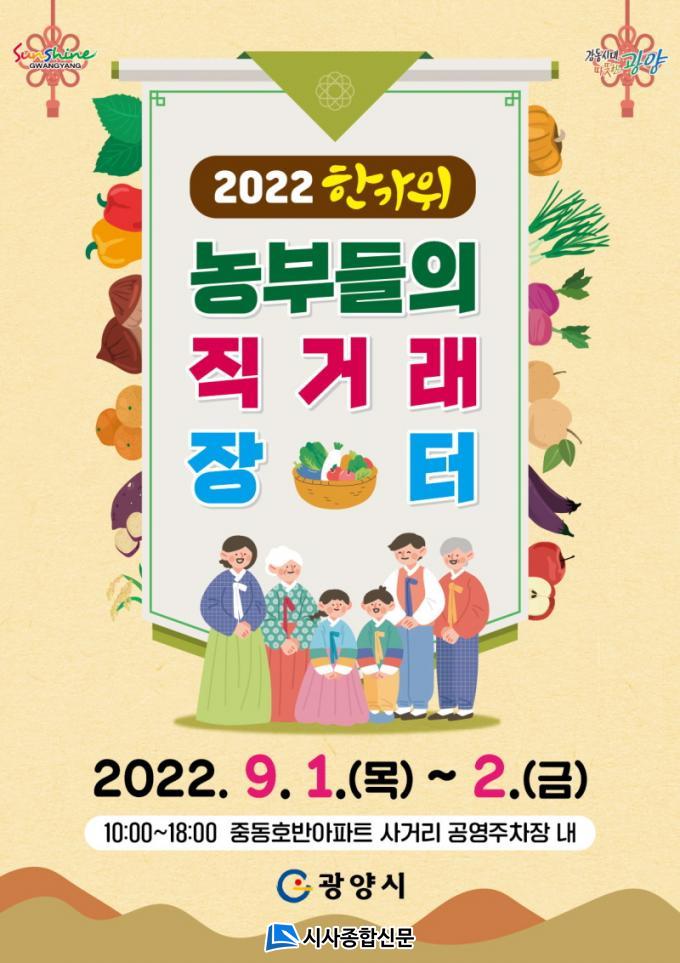 [½Ã»çÁ¾ÇսŹ® = Àå¹Î±Ô ±âÀÚ] ±¤¾ç½Ã´Â 2022³â Ãß¼® ¸íÀýÀ» ¸Â¾Æ 9¿ù 1ÀϺÎÅÍ ÀÌÆ²°£ ±¤¾ç½Ã¿¡¼ »ý»êµÇ´Â ¿ì¼ö ³óƯ»ê¹°À» Á÷°Å·¡·Î ±¸ÀÔÇÒ ¼ö ÀÖ´Â ¡®ÇѰ¡À§ ¸ÂÀÌ ³óºÎµéÀÇ Á÷°Å·¡ÀåÅÍ¡¯¸¦ ¿î¿µÇÑ´Ù.