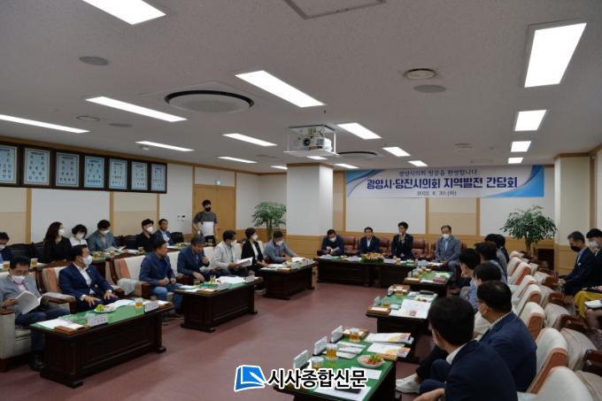 °£´ãȸ¿¡´Â ´çÁøÇ× È°¼ºÈ ƯÀ§ ¿î¿µ¿¡ µû¸¥ ÀÚ·á ¼öÁýÀ» À§ÇØ ±¤¾ç½Ã¸¦ ¹æ¹®ÇÑ ´çÁø½ÃÀÇȸ¿Í ±¤¾ç½ÃÀÇȸ ÀÇ¿ø, °ü°è °ø¹«¿ø µî 40¸íÀÌ Âü¼®Çß´Ù. °£´ãȸ´Â ±¤¾ç½ÃÀÇȸ ¾È¿µÇå ÀÇȸ¿î¿µÀ§¿øÀåÀÇ ÀÇȸ ¾È³»¿Í ±¤¾ç½Ã È«º¸¿µ»ó ½Ãû ÈÄ µÎ µµ½ÃÀÇ »ó»ý ¹ßÀü Çù·Â ¹æ¾È ³íÀÇ ¼øÀ¸·Î ÁøÇàµÆ´Ù.