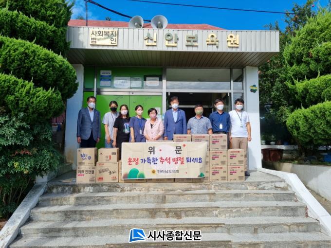 [½Ã»çÁ¾ÇսŹ® = ¿À½ÂÅà ±âÀÚ] ¹ÎÁ· °íÀ¯ ¸íÀýÀÎ Ãß¼®À» ¸Â¾Æ Àü³²µµÀÇȸ ±è¹®¼ö ÀÇ¿ø(¾ÈÀü°Ç¼³¼Ò¹æÀ§¿øÈ¸¤ý½Å¾È1)ÀÌ 2ÀÏ ½Å¾È±º ¼ÒÀç »çȸº¹Áö½Ã¼³ ½Å¾Èº¸À°¿øÀ» ã¾Æ ½Ã¼³¿¡ ÇÊ¿äÇÑ ¹°Ç°À» Àü´ÞÇÏ°í ¿ÂÁ¤À» ³ª´³´Ù.