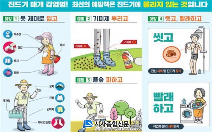 Áøµå±â ¸Å°³ °¨¿°º´ ¿¹¹æÀ» À§Çؼ´Â ¾ß¿Ü ÀÛ¾÷¡¤È°µ¿ ½Ã ÇǺΰ¡ ³ëÃâµÇÁö ¾Ê´Â ÀÛ¾÷º¹(±äÆÈ¡¤±ä ¹ÙÁö, ¸ðÀÚ, ¸ñ¼ö°Ç, Åä½Ã, Àå°©, ¾ç¸», ÀåÈ)À» Âø¿ëÇϰí, Áøµå±â ±âÇÇÁ¦ µîÀ» »ç¿ëÇØ¾ß ÇÑ´Ù.