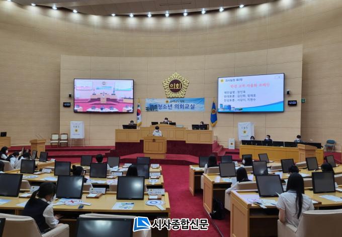 ÇϹݱâ û¼Ò³â ÀÇȸ ±³½ÇÀº µµ³» 13°³ ÃÊ․ÁßÇб³ Çлý 550¿© ¸íÀ» ´ë»óÀ¸·Î Áö¹æÀÇȸÀÇ ±â´É°ú ¿ªÇÒÀ» üÇèÅä·Ï ÇÏ¿© ¹ÎÁֽùΠÀǽÄÀ» ÇÔ¾çÇÑ´Ù. û¼Ò³â ÀÇȸ±³½ÇÀº µµ³» û¼Ò³âµéÀÌ ¡®1ÀÏ µµÀÇ¿ø¡¯À¸·Î À§Ã˵Ǿî ÀÇÀå ¼±°Å, Á¶·Ê Á¦Á¤¾È ÀÇ°á µî Áö¹æÀÇȸÀÇ ÀÇ»ç°áÁ¤ °úÁ¤¿¡ Á÷Á¢ Âü¿©ÇÏ´Â ÇÁ·Î±×·¥À¸·Î ÀÚÀ²ÇбâÁ¦°¡ ½ÃÇàµÇ¸é¼ Âü¿© Çб³ÀÇ È£ÀÀµµ°¡ Â÷Ãû ³ô¾ÆÁö°í ÀÖ´Ù.