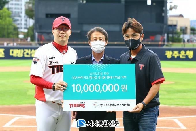 KIA´Â 2ÀÏ ±¤ÁÖ-±â¾Æ èÇǾð½ºÇʵ忡¼ ¿¸° »ï¼º ¶óÀÌ¿ÂÁî¿ÍÀÇ °æ±â¿¡ ¾Õ¼ ÀåÁ¤¼® ´ÜÀå°ú ¼±¼ö ´ëÇ¥ ¾çÇöÁ¾, ¹ÚÅÂ±Ô ±¤ÁÖȯ°æ¿îµ¿¿¬ÇÕ °øµ¿´ëÇ¥°¡ Âü¼®ÇÑ °¡¿îµ¥ ¶÷»ç¸£ µ¥ÀÌ À¯´ÏÆû °æ¸Å ¼öÀÍ±Ý 1061¸¸8000¿øÀ» ±¤ÁÖȯ°æ¿îµ¿¿¬ÇÕ¿¡ Àü´ÞÇß´Ù.