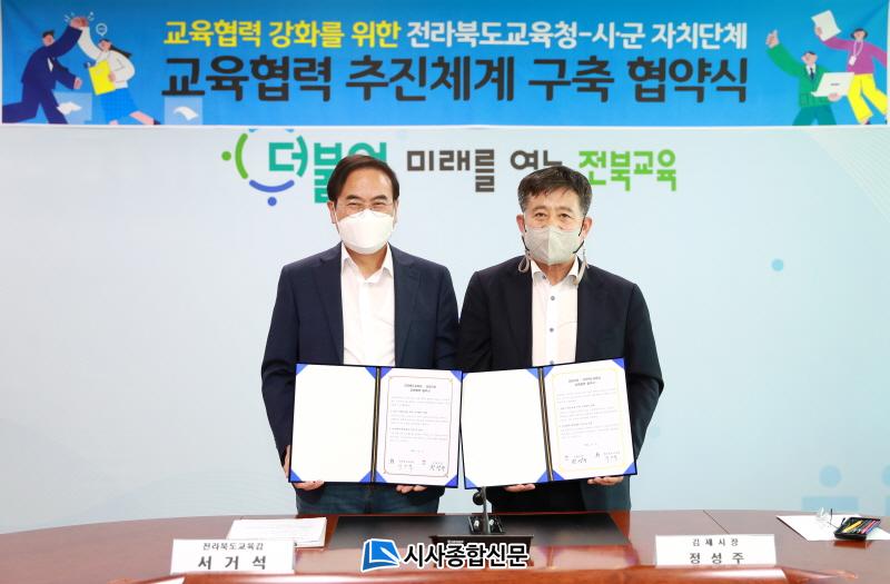 ¼°Å¼® ±³À°°¨Àº 6ÀÏ Á¤¼ºÁÖ ±èÁ¦½ÃÀå, À¯ÈñÅ ¿ÏÁÖ±º¼ö¿Í Â÷·Ê·Î ±³À°Çù·Â ÃßÁøÃ¼°è ±¸Ãà Çù¾à½ÄÀ» °¡Á³´Ù. À̳¯ Çù¾à½ÄÀº Áö³ 2ÀÏ ÀÍ»ê½Ã¿ÍÀÇ Çù¾à¿¡ ÀÌÀº °ÍÀ¸·Î µµ±³À°Ã»Àº ¿ÃÇØ ¾È¿¡ 14°³ ½Ã±º Àüü¿Í Çù¾à ü°áÀ» ¸¶¹«¸®ÇÒ ¿¹Á¤ÀÌ´Ù.