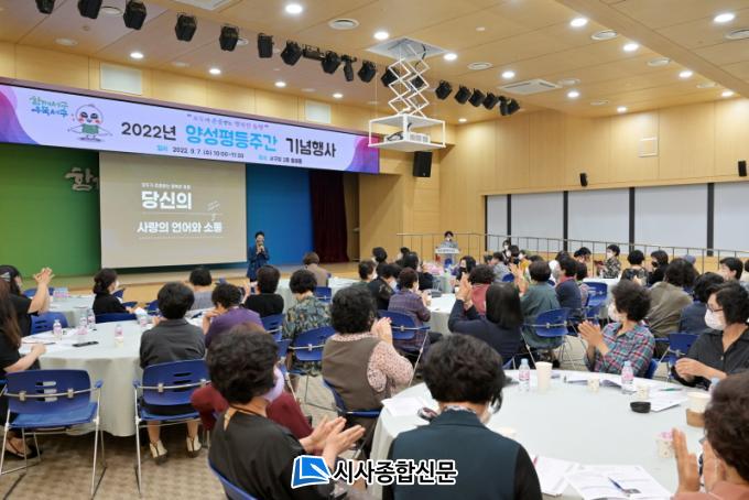 ¾ç¼ºÆòµîÁÖ°£ ±â³äÇà»ç´Â ¿ì¸®»çȸÀÇ ¸ðµç ¿µ¿ª¿¡¼ ¼ºÂ÷º°À» °³¼±ÇÏ°í ¾ç¼ºÆòµî ½ÇÇöÀ» À§ÇØ °³ÃֵǾúÀ¸¸ç À̳¯ Çà»ç¿¡´Â ¾ç¼ºÆòµî À¯°øÀÚ, ¼±¸¿©¼º´Üü ȸ¿ø, ¿©¼ºÄ£Èµµ½Ã ½Ã¹ÎÂü¿©´Ü µî 100¿© ¸íÀÌ Âü¼®ÇÏ¿© ¾ç¼ºÆòµî¿¡ ´ëÇÑ ½Ã¹ÎÀû °ü½ÉÀ» Á¦°íÇÏ´Â ¼ÒÁßÇÑ ½Ã°£À» °¡Á³´Ù.